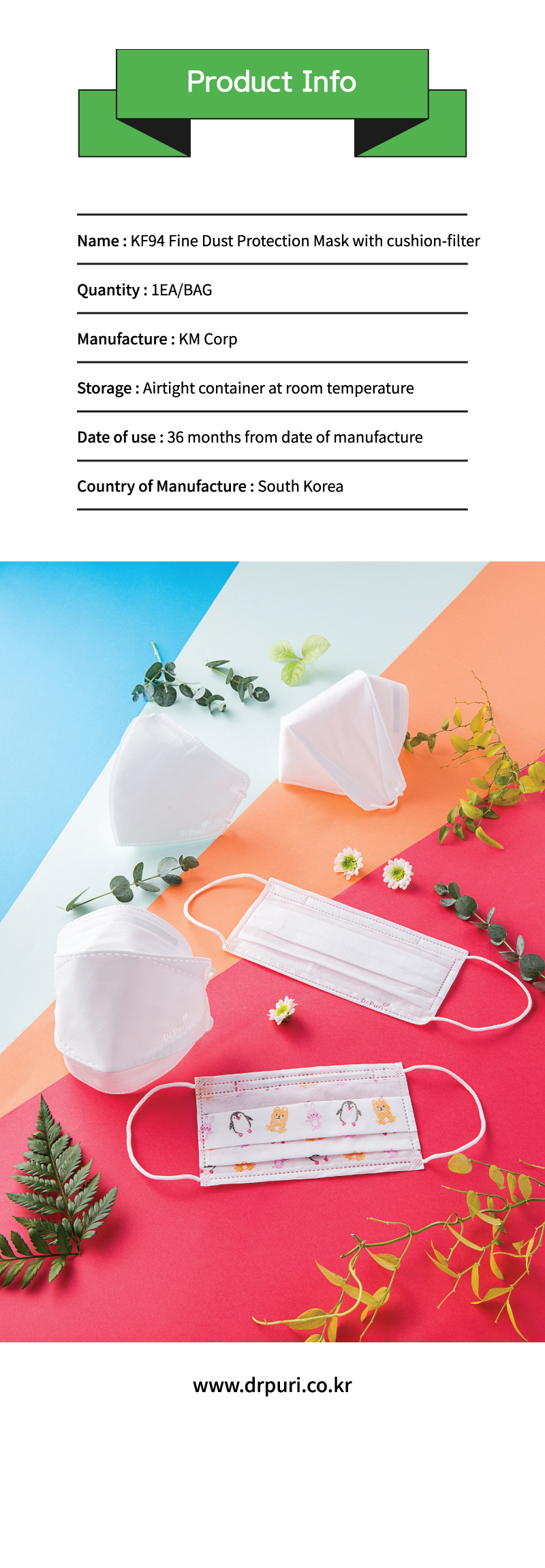 Dr.puri KF94-Cushion filter fine dust, yellow dust mask